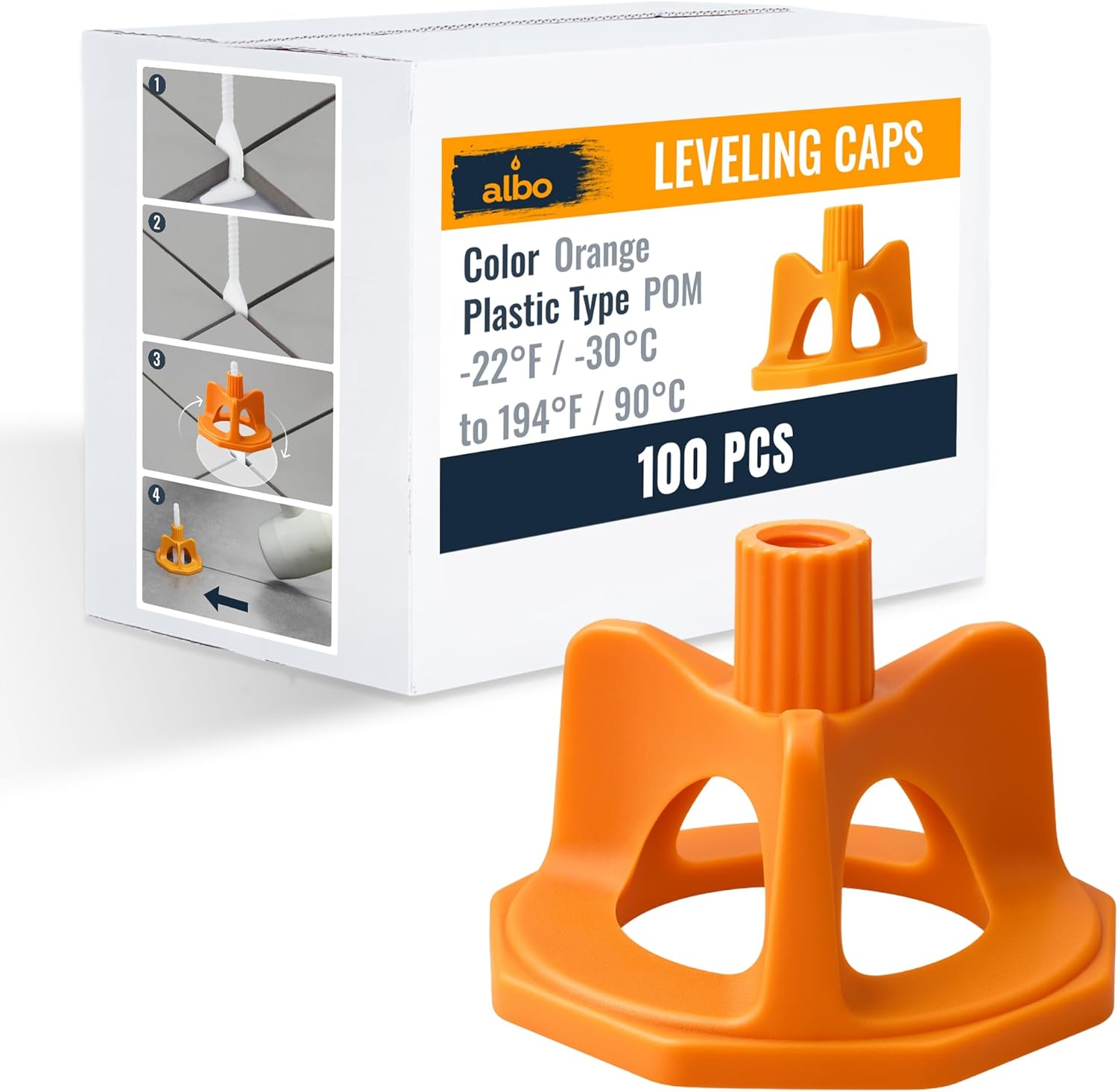 ALBO Reusable Caps 100 PCS for Tile Leveling System - Orange Replacement Caps for Floor & Wall Spacers - Anti-Lippage Installation Tools, Self-Leveling Spacer Kit for Ceramic, Stone & Tile Formats