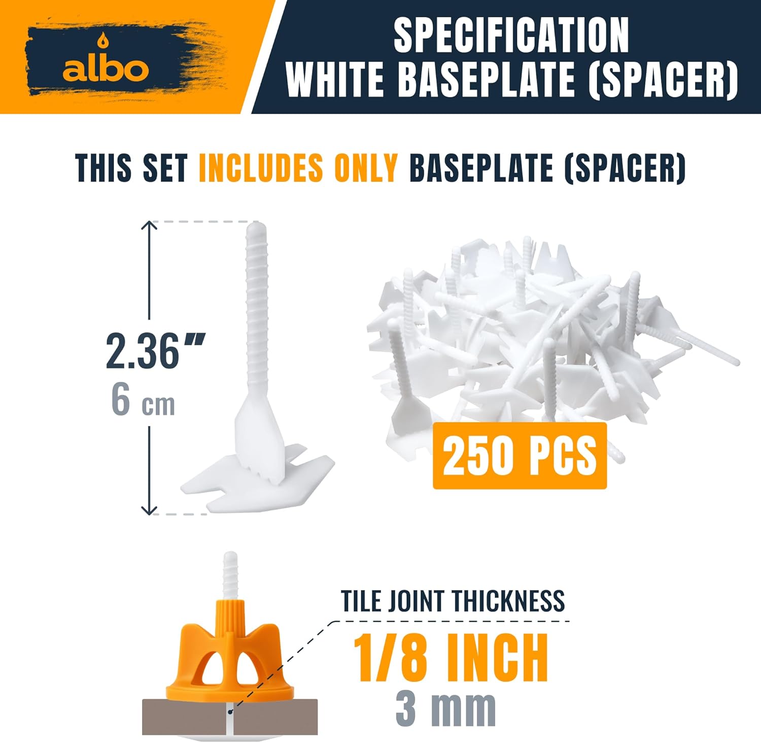 ALBO Tile Leveling System Base Plates 1/8" - 250 PCS - Professional Floor & Wall Spacers, Anti-Lippage Installation Clips for All Tile Formats, Self-Leveling Spacer System nova