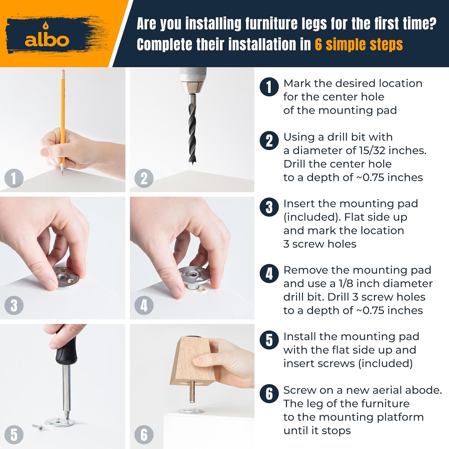 - 【Quality Installation】Thanks to a special recess, the screw-in furniture legs are tightly secured to prevent wobbling. Ideal for replacement legs for furniture, cabinet legs set of 4, and couch leg replacement. Suitable as wooden chair legs and replacement sofa legs.